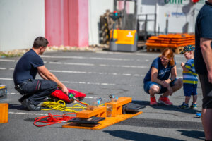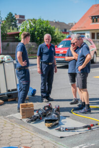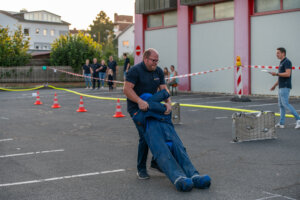 Aber auch für die anderen Festbesucher war einiges geboten. Getreu dem Motto „Feuerwehr zum Anfassen“ konnte ein Feuerlöschertraining absolviert, selbst ein hydraulisches Rettungsgerät ausprobiert oder die neue Atemschutzübungsanlage des Neckar-Odenwald-Kreises bestaunt werden. In Vorführungen konnten die Besucher einen Eindruck gewinnen, wie anspruchsvoll die Tätigkeit des Atemschutzgeräteträgers ist. Wer den Tag etwas ruhiger genießen wollte, war in der Kaffeebar, betrieben von der Alterswehr, bestens aufgehoben.