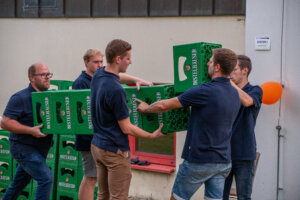Nach der festlichen Segnung wurde am Samstag der gemütliche Teil des Abends mittels Bieranstich eingeläutet. Bürgermeister Dörr, der durch Herrn Landwehr von der Distelhäuserbrauerei unterstützt wurde, übernahm diese Aufgabe und schaffte mit zwei Schlägen den Anstich. Ein herzliches Dankeschön gilt hier der Distelhäuserbrauerei für die Spende des 30 Liter Fasses. Mit einem Freibier in der Hand konnten sich dann die Besucherinnen und Besucher die geweihten Fahrzeuge anschauen. Das HLF 10 zog mit seiner umfangreichen Ausstattung u.a. Einem akkubetriebenem Rettungssatz und einem ebenfalls akkubetriebenen Belüftungsgerät viel Aufmerksamkeit auf sich. Auch der KdoW konnte bestaunt werden. Die anwesenden Kinder nutzten die Chance um sich wie ein echter Feuerwehrmann oder eine echte Feuerwehrfrau zu fühlen. Natürlich war an dem Abend auch für das leibliche Wohl gesorgt – mit Würsten, Steaks und Grünkernküchle war für jeden Geschmack etwas dabei. Ein Highlight jagte das Nächste mit den ersten Dürmer Firelympics, bei denen neun Gruppen antraten.In einem Wettkampf rund um das Gerätehaus mussten die Teilnehmerinnen und Teilnehmer einige Aufgaben bewältigen. Hier galt es zum einen Kisten quer zu stapeln, Schläuche zu flechten, eine Schätzfrage korrekt zu beantworten, einen Spielzeugfeuerwehrmann mit verbundenen Augen auf einem Spieleteppich zu suchen, aber auch ein Armaturenpuzzle zu lösen und den Dürmer „Toughest Firefigther Alive“ zu bestreiten. Hierbei handelte es sich um einen Staffellauf, mit folgenden Aufgaben: einen, mit Wasser gefüllten, Schlauch ziehen, einen Schlauch rollen, eine Dummypuppe ziehen, einen Eierlaufen bestreiten und Reifen flippen. Bei diesem großartigen Turnier gab es keine Verlierer, denn dabei sein ist alles. Dennoch konnte zum Schluss ein Sieger gekürt werden. Mit der Feuerwehr Hardheim hatten die ersten Dürmer „Firelympics“ ihren Gewinner. Die Platzierungen lauteten wie folgt: 1. Feuerwehr Hardheim, 2. Feuerwehr Buchen 1, 3. Feuerwehr Buchen 2, 4. Feuerwehr Hardheim Abt. Schweinberg, 5. Der „Bunt gewürfelte Haufen“, 6. Der „Fassbiermontag Aalde“, 7. Madonnenland Schwaben 2009, 8. DRLG Walldürn, 8. Fahrdienst Ullmer. Die ersten drei Plätze erhielten Bierfässer, gesponsert von der Walldürner Firma Getränke Löhr. Auch hier einen herzlichen Dank für die Spende.