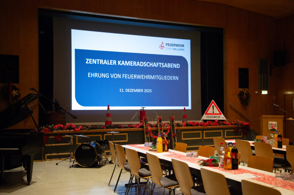 Am 11. Dezember 2025 fand in Walldürn der zentrale Kameradschaftsabend der Feuerwehr statt – ein feierlicher Rahmen, um die Einsatzmitglieder für ihre teils jahrzehntelange Dienstzeit zu ehren. Der festlich geschmückte Saal des „Haus der offenen Tür“ und die gemütliche Atmosphäre boten den perfekten Hintergrund für einen Abend, der ganz im Zeichen von Anerkennung und Zusammenhalt stand.