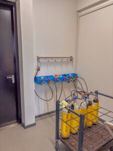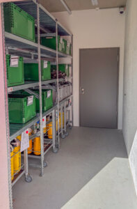 In der 2026 in Betrieb genommenen neuen Werkstatt, können die Kunden in einem separaten Bereich rund um die Uhr das kontaminierte Material abgeben. In einem definierten Ablauf mit strikter „Schwarz/Weißtrennung“ erfolgt dann die Reinigung, Aufbereitung und Prüfung der Atemschutzgeräte sowie der Einsatzkleidung.