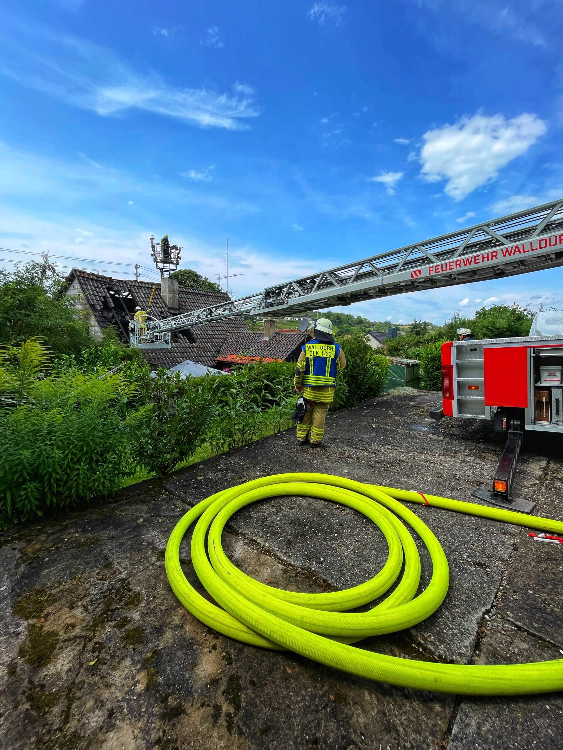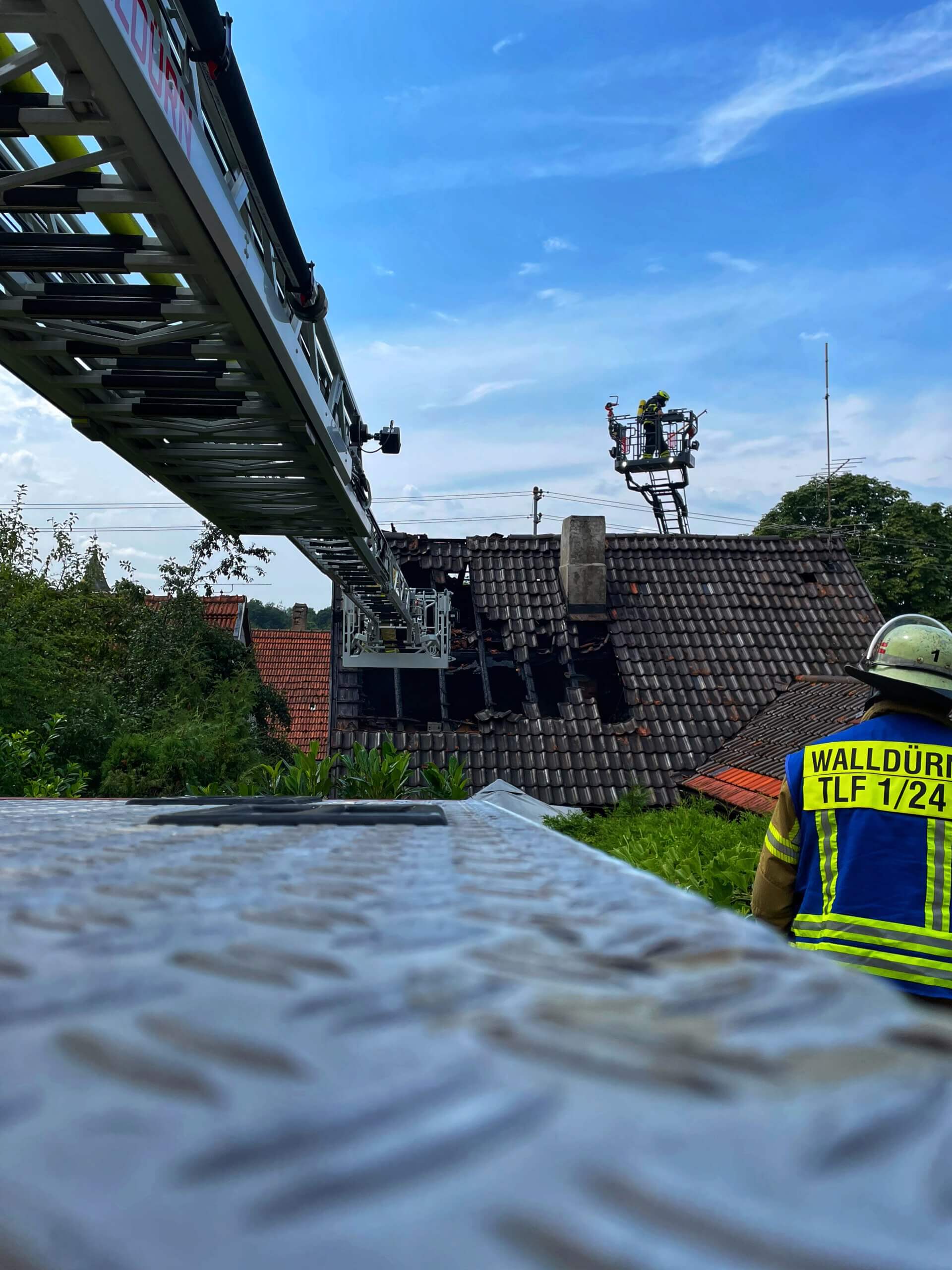 Vor Ort mussten glücklicherweise nur noch Nachlöscharbeiten auf der Gebäuderückseite über die DLK durchgeführt werden.
