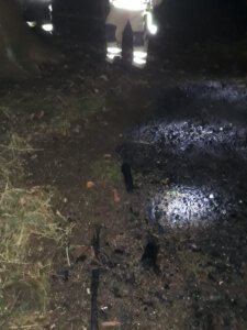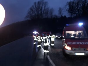 Die Einsatzstelle konnte im ersten Moment nicht genau lokalisiert werden, befand sich dann aber schließlich an einer schwer zugänglichen Stelle mitten im Wald.