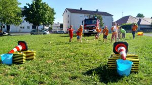 Auch die Kleinsten kommen bei uns nicht zu kurz. Seit 2016 sind sie dank der Gründung der Kinderfeuerwehr auch dabei. Mit Spiel und Spaß kommt man hier dem Thema Feuerwehr näher. Vom Geschenke basteln, über Geschicklichkeits- und Teamspiele bis hin zum selbstständigen Löschen mit einem D-Schlauch ist für jeden was in den zweiwöchig stattfindenden Treffen dabei. Aber auch Ausflüge und Übernachtungen im Rahmen einer Kinderfeuerwehr-Nacht stehen bei den 6 bis 10-Jährigen auf dem Programm. Eines ist sicher: Das sechsköpfige Betreuerteam aus ausgebildetem Feuerwehrpersonal und Erzieherinnen lässt sich immer etwas Neues einfallen und ist für fast jeden Spaß zu haben um den kleinen „die großen roten Autos“ nahe zu bringen.